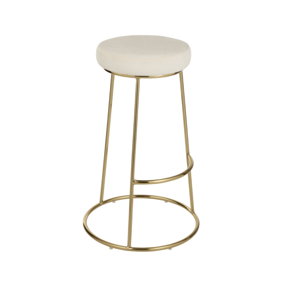 The Pearl Cream Bar Stool brings warmth and depth to any setting. A brushed gold frame catches the light, while the calming cream toned velvet seat adds a subtle accent and comfort. A perfect fit to a poseur table or to be placed beside a bar. Designed for modern spaces that celebrate design, connection, and good company.