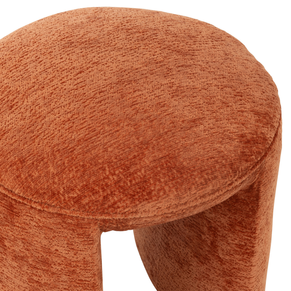 With its sculptural curves and understated presence, the Tiger Sky Ottoman is a versatile piece that balances form and function. Upholstered in a soft, textured fabric in a rich rust tone, its organic silhouette brings a modern edge while remaining calm and inviting. Perfect as a perch, additional seating or accent in layered lounge settings, this ottoman adds a subtle yet sophisticated touch to both contemporary and bohemian spaces.